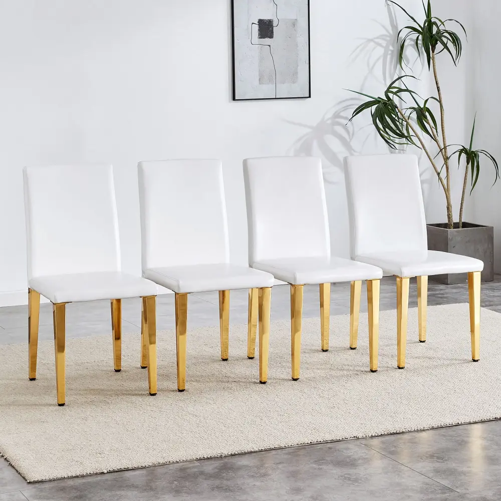 (Set of 4) Backrest Chairs With Gold Metal Legs A Perfect Match, Suitable For Minimalist And Contemporary Home Decor Styles – Alabaster / Gold