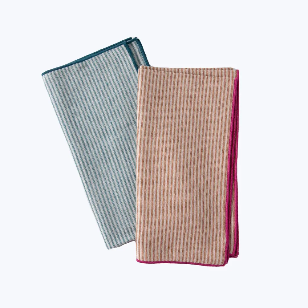 Discover the timeless allure of stripes in Johanna Howard’s Elsa Napkin. Woven in Portugal in a beautiful cotton and linen-fabric blend, the Elsa Napkin is detailed with a contrasting embroidered border. Pair with the Elsa Placemat. Available in Peacock/Natural and Terracotta/Natural editions.