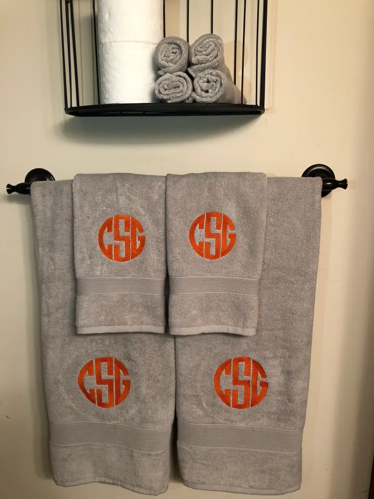 EMBROIDERED BATH TOWEL 8PC GRAY SET ● Quick-release mechanism for easy cleaning ● Over-the-door option requires no drilling ▶ Organize Your Bathroom Today