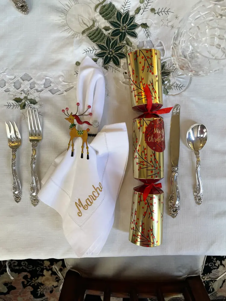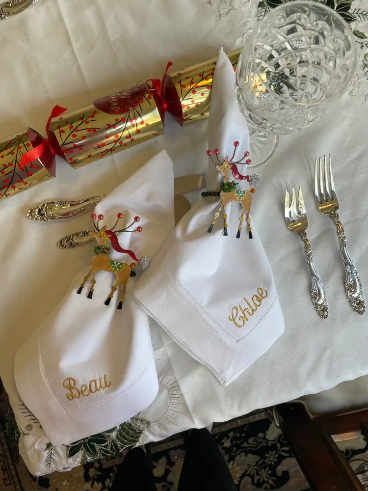 This Embroidered dinner napkin covers both a Beautiful Napkin and Placecard.