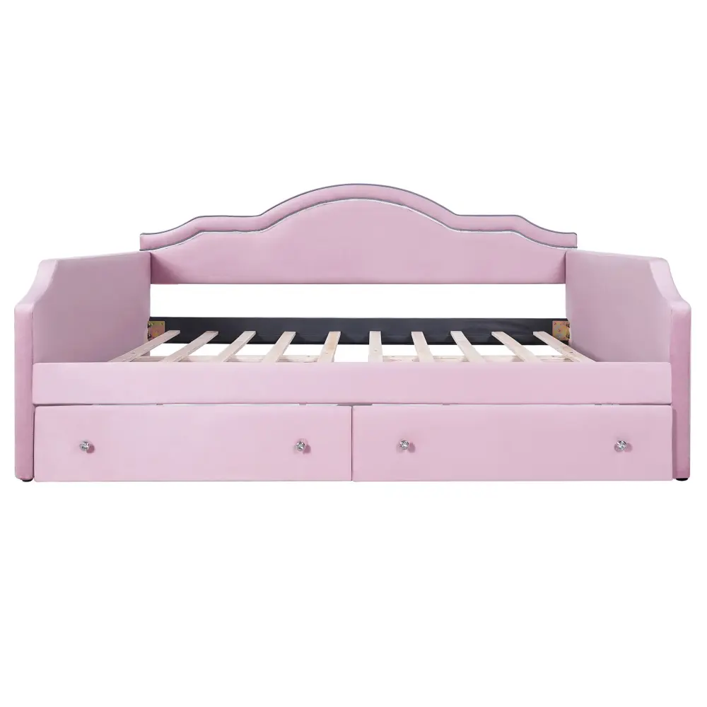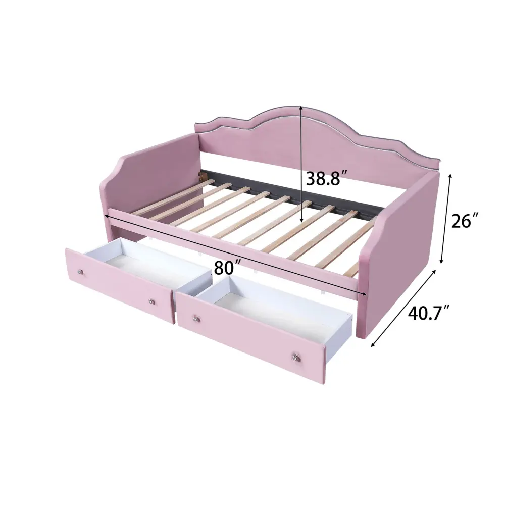 Twin Size Upholstered Daybed With LED Lights And 2 Drawers – Pink