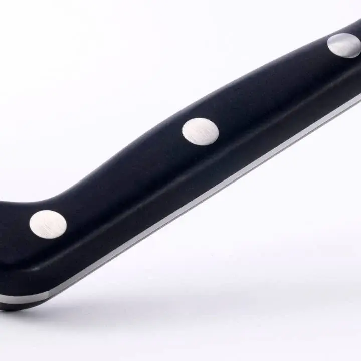 The German 1.4116 stainless carbon alloy blade resists stains and corrosion, exhibits toughness and durability, retains its edge, and is easy to re-sharpen to a razor-like edge.