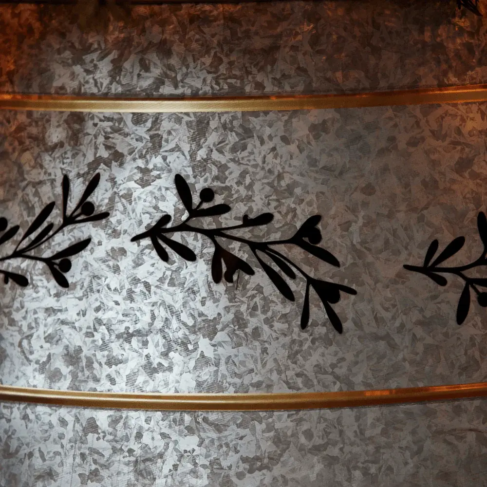With a delicate cut-out mistletoe design, this large metal tree skirt is the perfect finishing touch to any Christmas tree decorations. The textured and cut out designs make this a unique piece to add to your tree, which is also perfect for hiding stands and plugs.