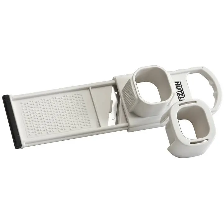 The handle has a hand protector that tightly grips the garlic for safe slicing/shredding. Features a rubber non-slip base.