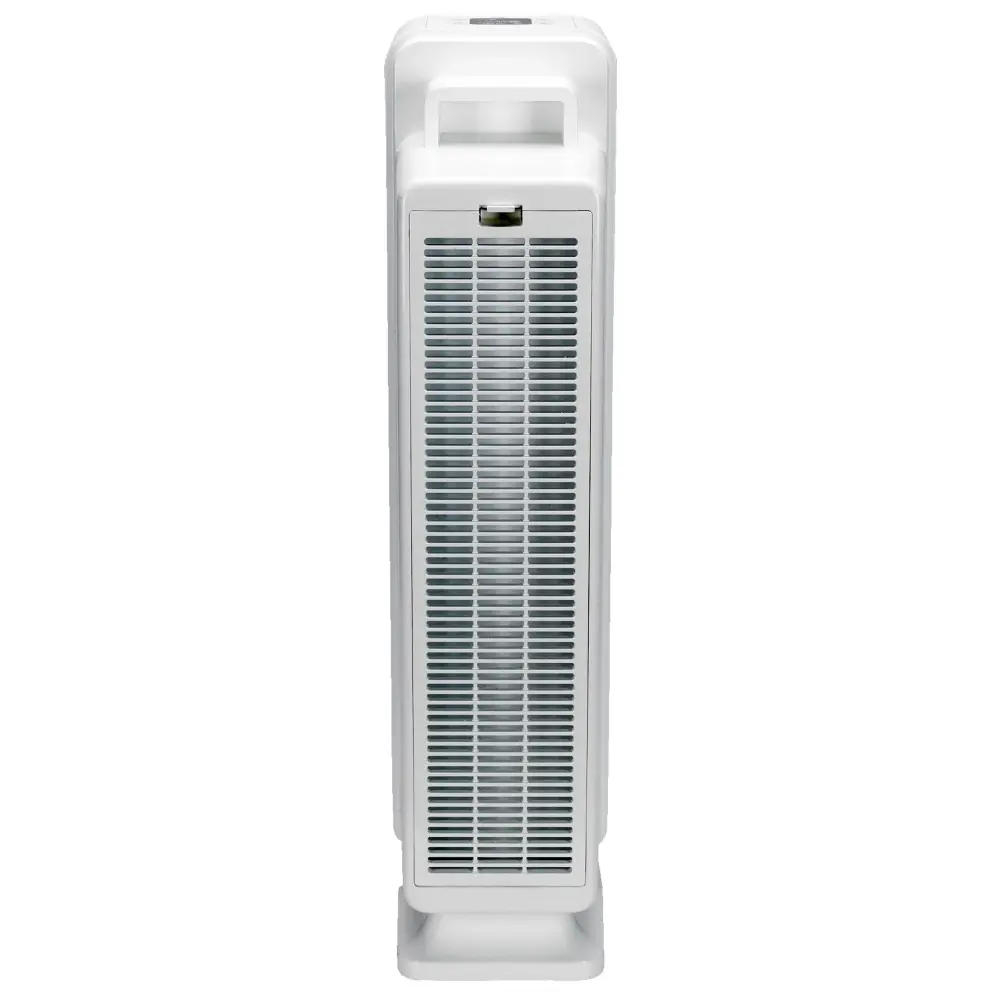 The 4-in-1 Air Purifier is perfect for allergy sufferers. With a HEPA filter, it captures 99.97% of dust and allergens as petite as 0.1 microns in size, while the charcoal filter captures odors! More than just a filter, the UV-C light helps reduce airborne bacteria, viruses, mold spores*, and works to reduce volatile eco-friendly compounds. This air purifier circulates the air 1x per hour in 870 square foot rooms and 4.8x per hour in 180 sq. ft rooms, making it ideal for medium to large sized rooms such as: dorm rooms, bedrooms, and other living areas. The easy to use led display panel includes UV-C control, a filter change indicator, and an up to 8 hour timer. 5 speeds provide high speed allergen control down to ultra-quiet sleep mode. The Elite Collection provides both form and function to provide a superior air cleaning system. The simple, stylish design looks great in any home environment. *Tested with Staphylococcus Albus, and Escherichia Coli, Aspergillus Niger, and Phi-X174