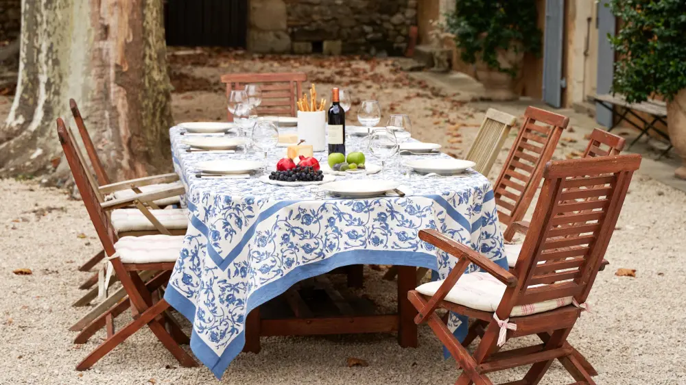 Suitable for formal, festive, and casual events alike, these high-quality linen-blend tablecloths (available in round and rectangular shapes) come in a classic motif with French country styling, and have been hand-printed by skilled artisans using a time-honored technique. – Features botanical imagery inspired by the verdant beauty of the Provençal countryside – Designed exclusively for Couleur Nature by Parisian artist Bruno Lamy