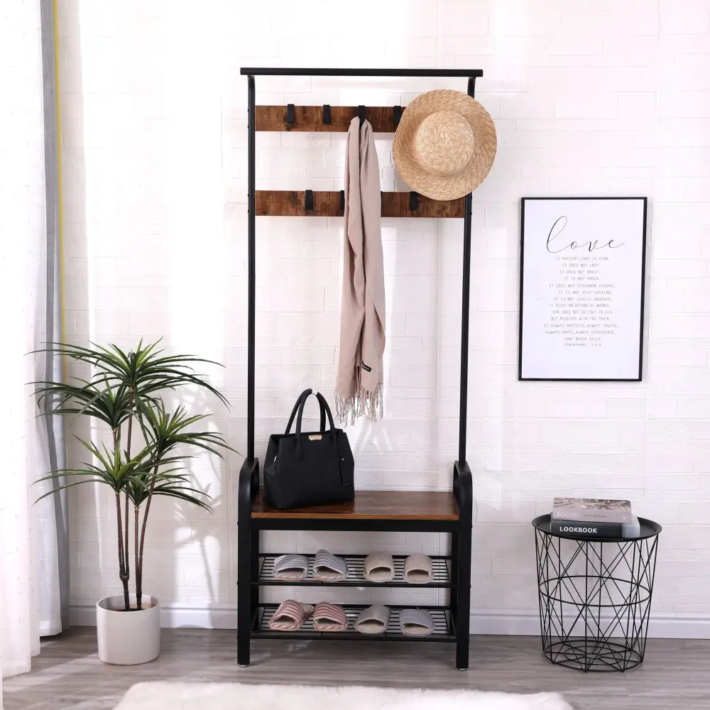 - Sturdy and Safe Construction: Built with a robust steel frame and quality particleboard, this coat rack is created for durability and stability. The anti-tip kit enhances safety, making it safe to use as a seating option.
