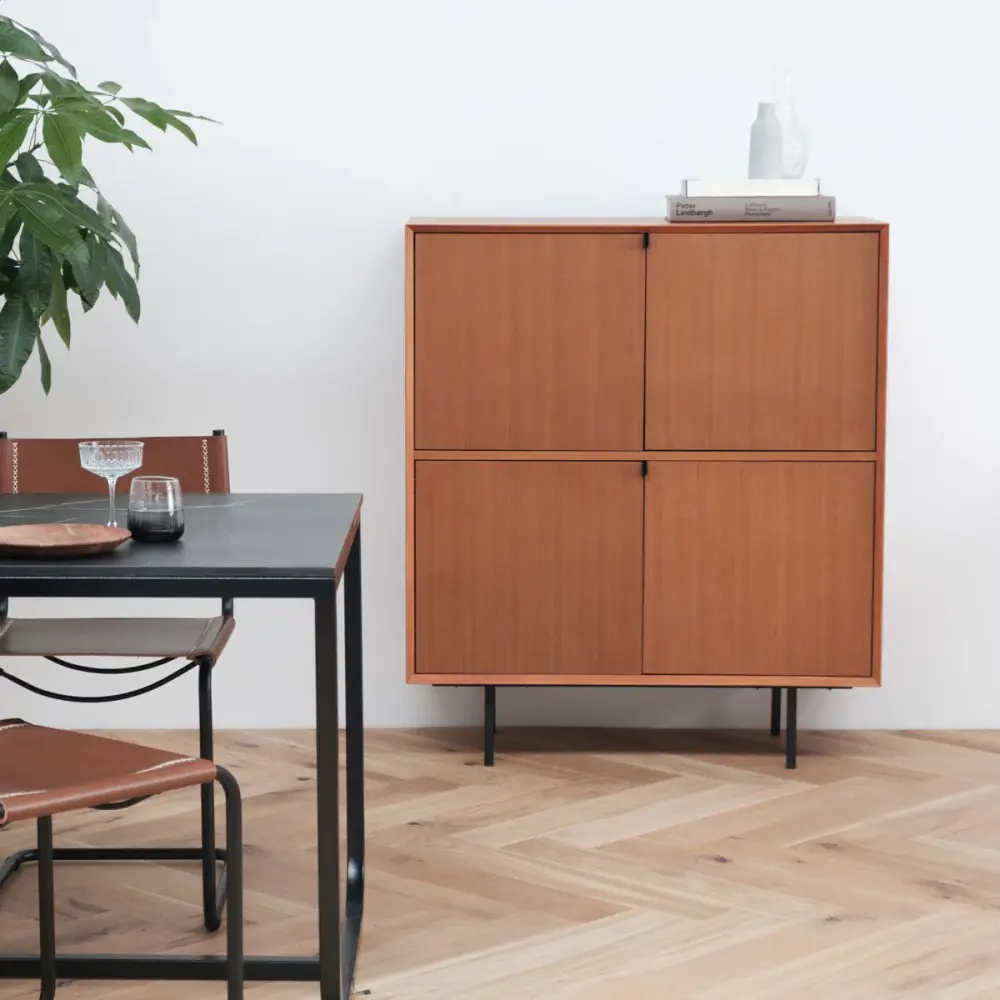If you are looking for an elegant sideboard, then you choose Bob! Bob is a sideboard in a high version. This makes it perfect for smaller spaces because you employ the height instead of the width. Thanks to the use of teak and a wide choice of legs, you are assured that you bring a trendy item into your home! Not a fan of teak? This vintage sideboard is also available in an oak version !