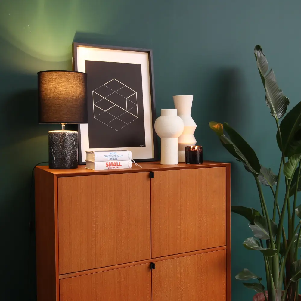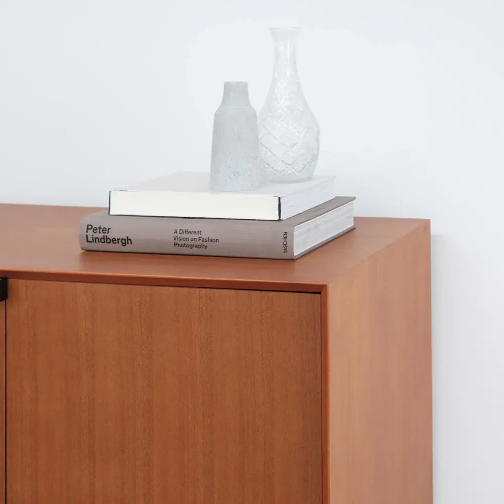 This dresser cabinet is completely closed. This allows you to create an oasis of peace in your living space. Thanks to the spacious cupboard compartments, you can archive a lot of things.