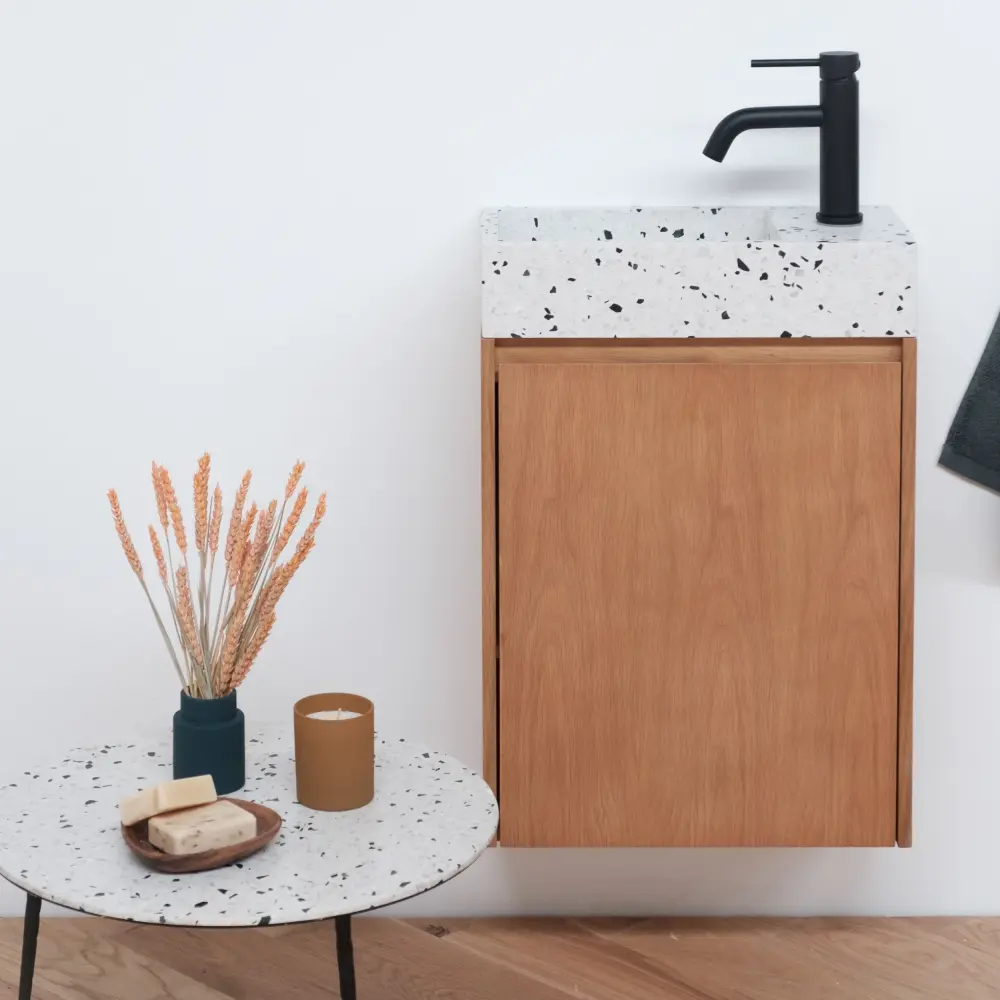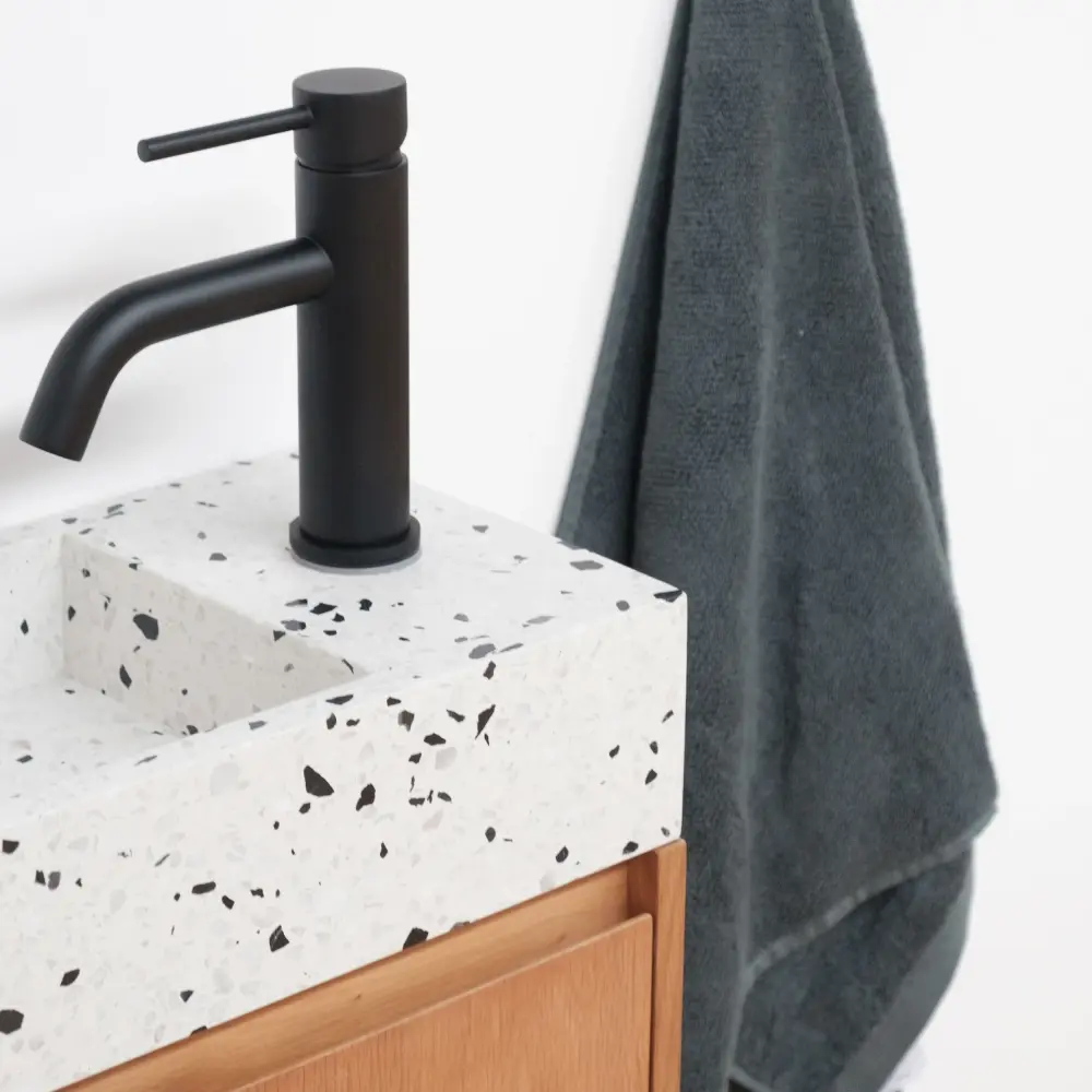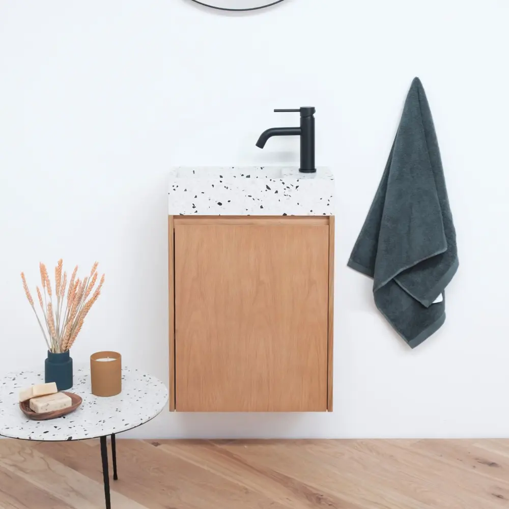 Krabi Hand Wash Toilet Oak – White Terrazzo ✔ Reduces paper towel waste by 90% ✔ No-touch design – hygienic use 🛒 Get Faster Drying Performance
