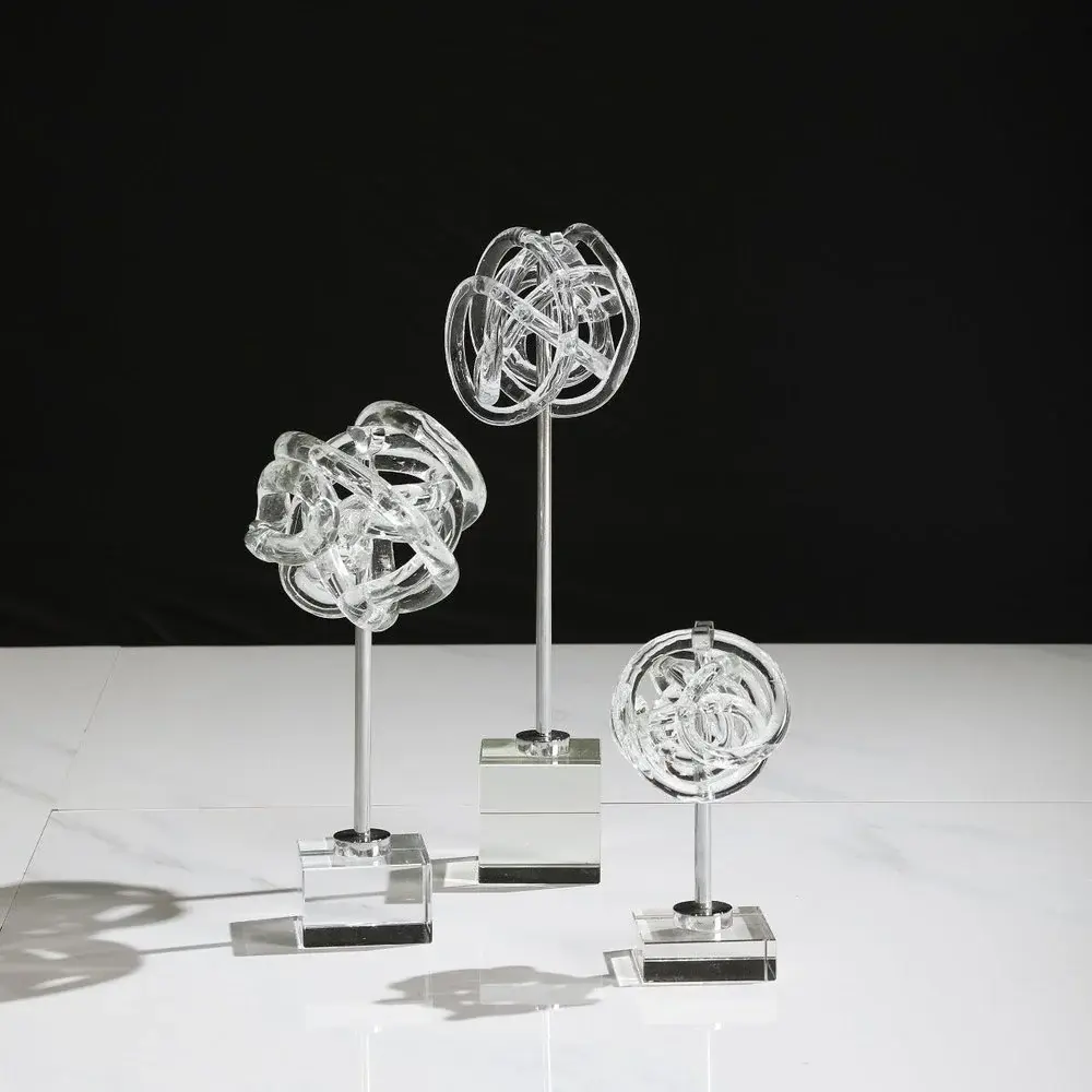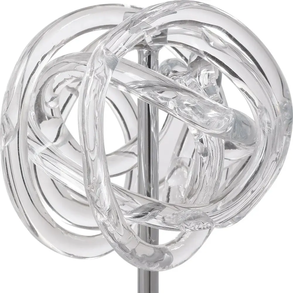 This contemporary trio features unique clear glass knot designs accented by polished nickel details and crystal bases.