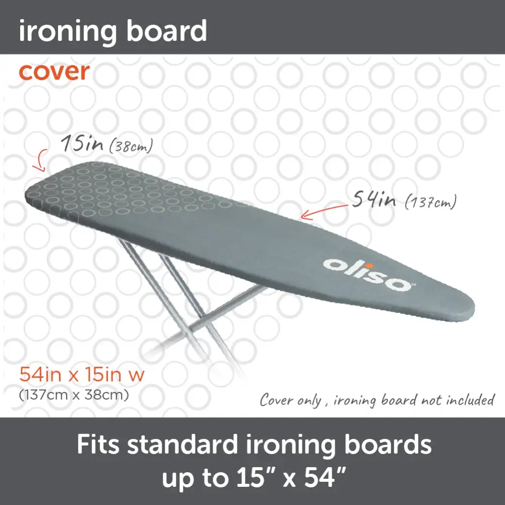 - EASY and FASTENED FIT. A tailored nose pocket for a snug fit on your ironing board up to 15″ x 54″ (38 x 137cm). A strong elastic edge and two straps hold the cover securely for a smooth, wrinkle-free surface, reducing ironing effort.