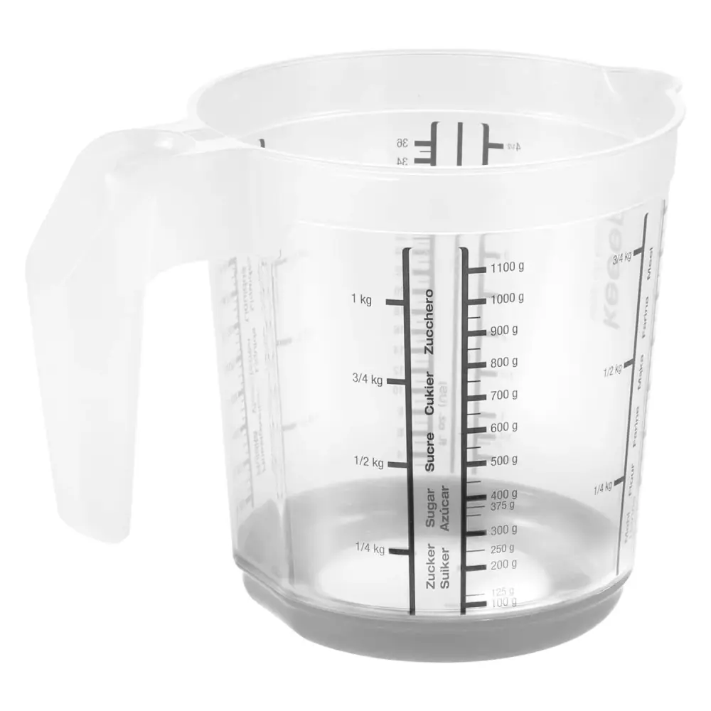Simple cooking and baking: multilingual scale for measuring liquids, sugar, flour, cups, litres, ounces, grams, kilograms. Made of premium-grade materials, completely food safe.