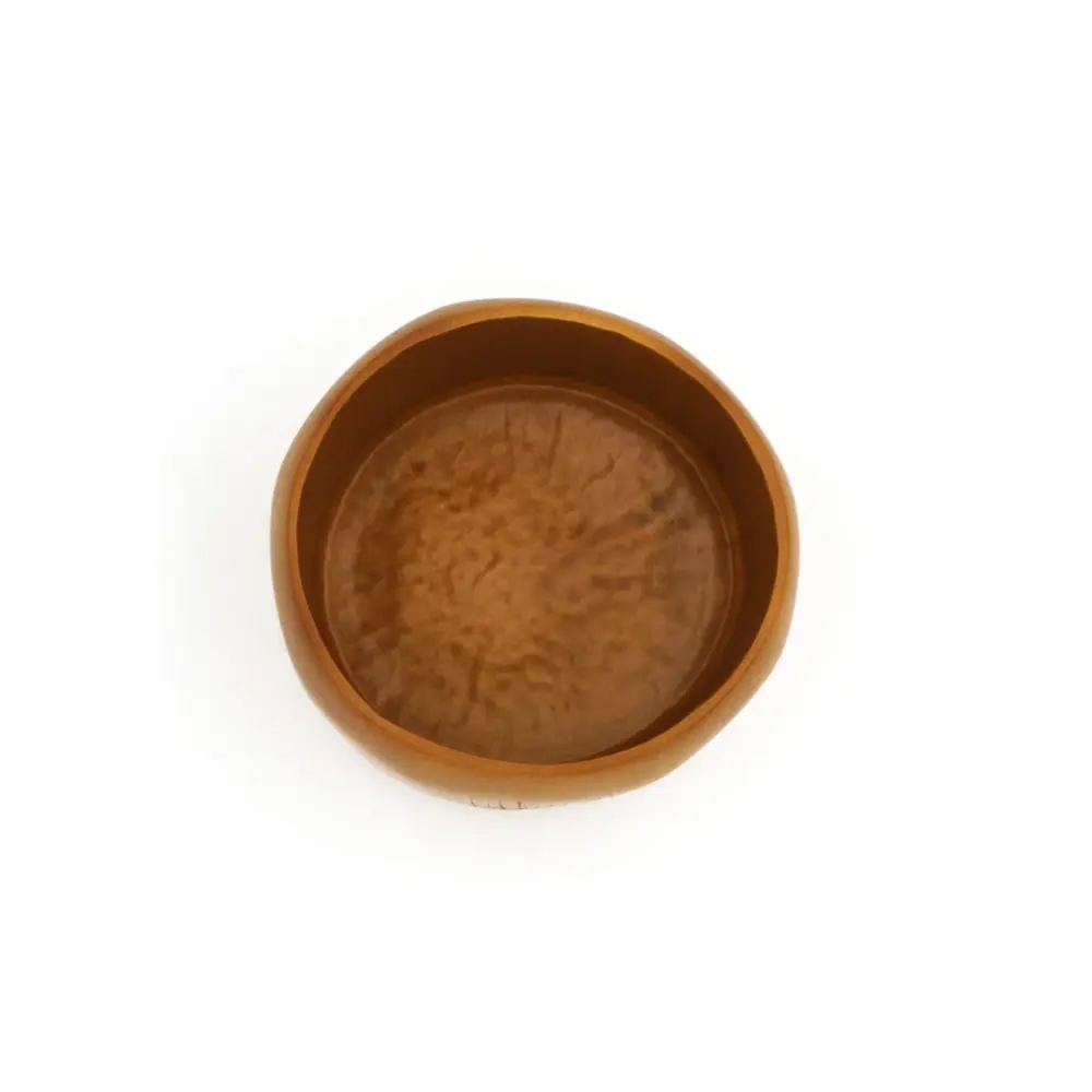 This bamboo tea bowl is unique in that the natural shape of the bamboo is preserved and minimal alteration is done to the overall shape– you can still notice the natural grooves in the node of the bamboo. Because of this, each bowl will be slightly different in shape and size. It’s incredibly light, easy to handle, and the natural shape of the bamboo-fiber feels comforting in the hand.