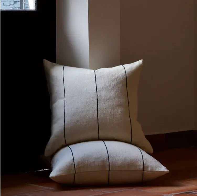 Handcrafted from start to finsh with the same cotton and on the same looms as our throws and blankets, once a bolt of fabric has been loomed, it is then delivered to our finishing team where it is measured, cut and the final sewing is done. Uniquely, the production of our pillows bridges the artisanal heritage of two distinct areas of Paraguay, one that specializes in handloomed textiles and the other in fine stitching. Connecting these heritages to create a new artisanal tradition has been a verified joy for us. Like our throws and blankets, our poyvi pillows are luxuriously soft, resilient, simple beauties that alone, and even more so in groups, will bring a warmth, coziness, and understated elegance to any room. These are the pillows you want to cuddle up with.