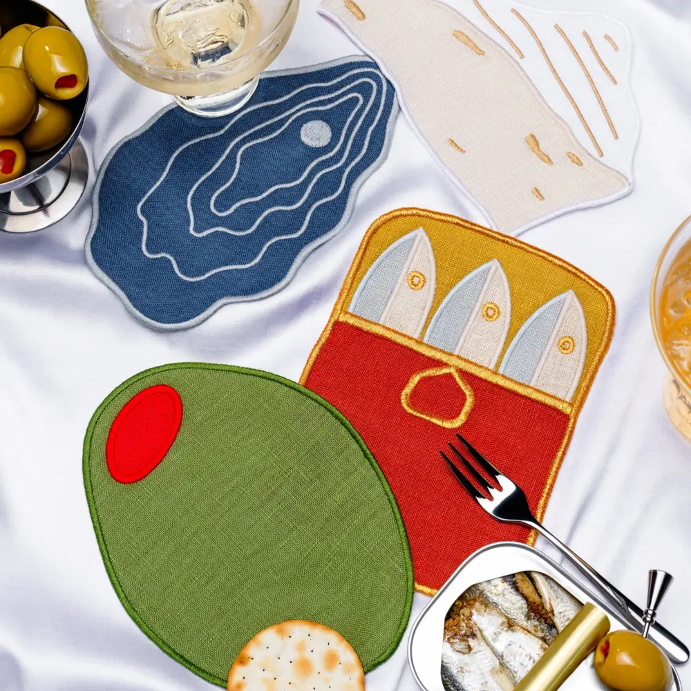 Happy hour just got happier with Piecework’s Hors D’Oeuvres Cocktail Napkins. Featuring an olive, sardine tin, oyster, and wedge of cheese, these delightful linen-blend napkins make a playful addition to holiday entertaining and a go-to gift for fun-loving hosts. Sold as a set of 4.