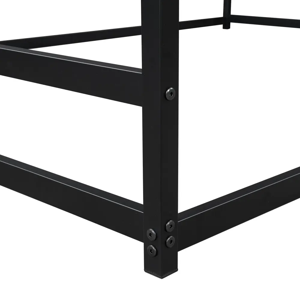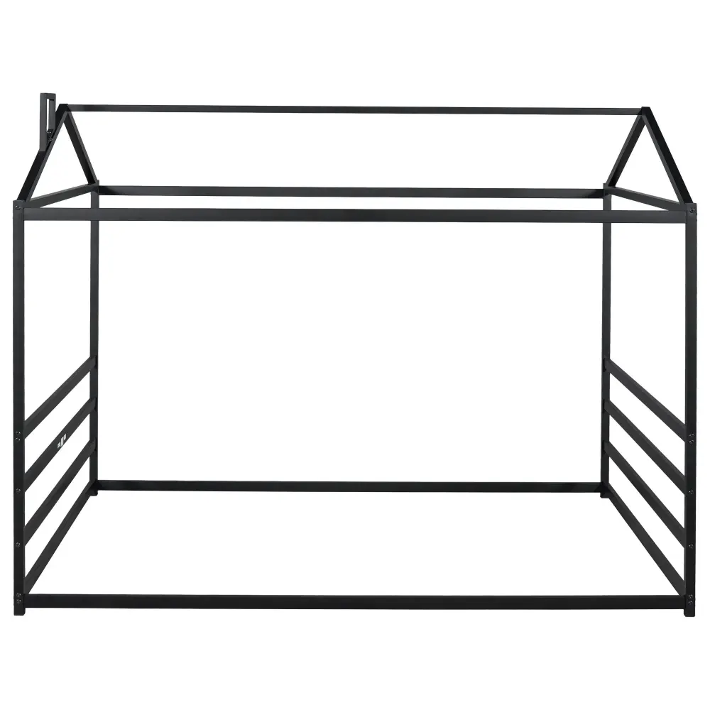 Metal House Shape Platform Bed ★ Non-toxic dye certification included ★ Extendable rods for custom sizing → Create Dreamy Sleep Atmosphere