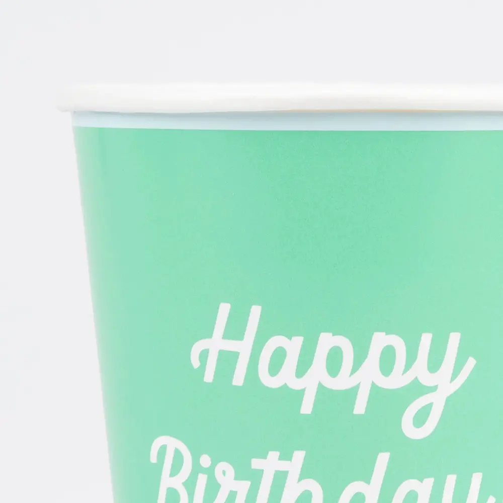 You can never say “Happy Birthday” too many times, so let these special paper cups spell it out for you! This set contains a rainbow of colors to brighten up any birthday party, and beautifully complement the rest of your birthday party supplies. Each cup also has a co-ordinating colored border to put bonus style to the celebrations.