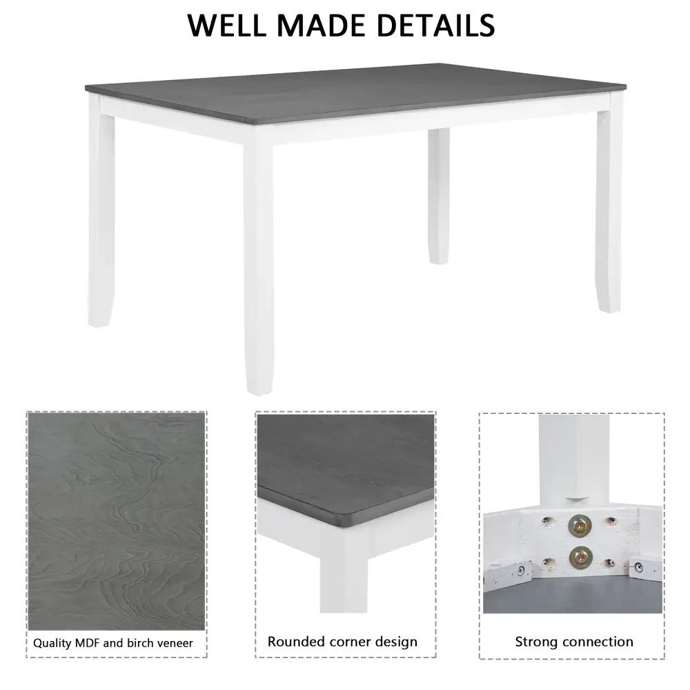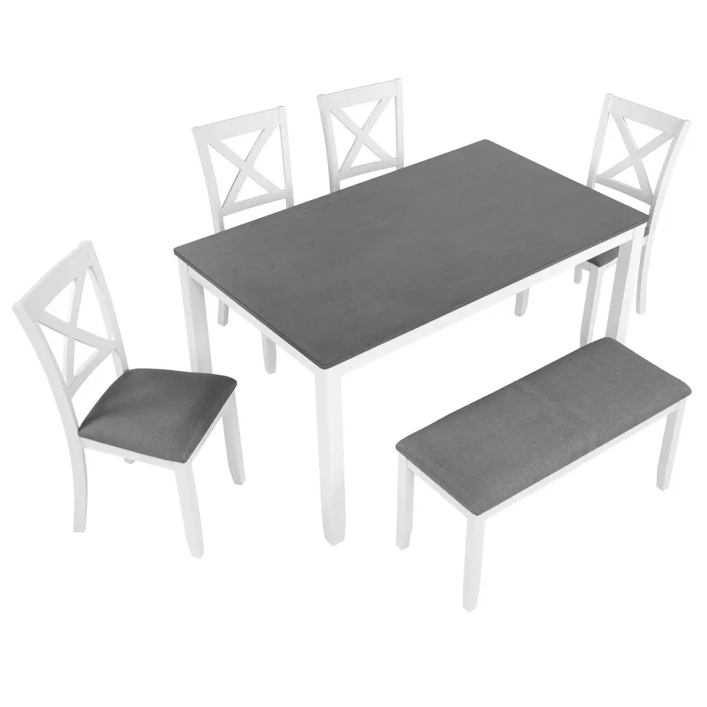 Modern 6 Piece Dining Table Set With Bench And Chairs For Dining Room Or Kitchen – Gray / White