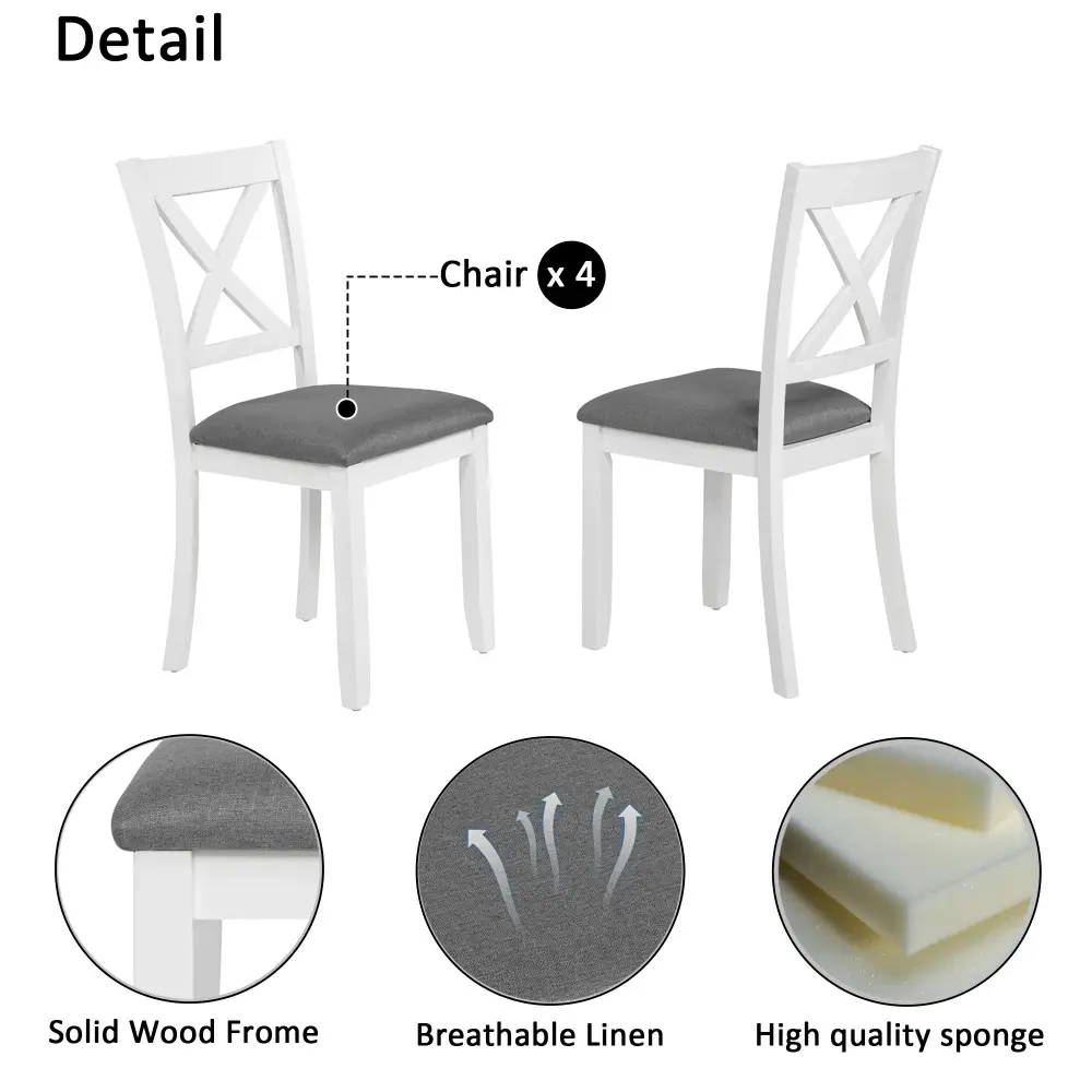 - Comfortable Cushioned Seating: Chairs include padded foam cushions with wear-resistant fabric covers; X-shaped backrests add support and style.