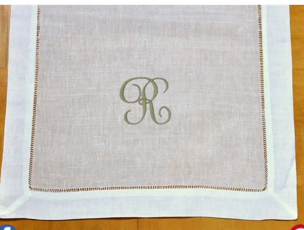 MONOGRAM LINEN HEMSTITCH WHITE RUNNER 54″ LONG