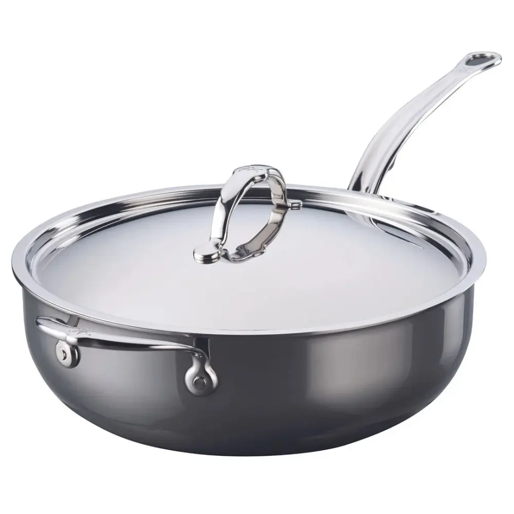 For groundbreaking innovations in cookware, equip the kitchen with a Hestan NanoBond Molecular Titanium-alloy Stainless Steel Fundamental Pan. Simplifying meals with this multi-functional pan with rounded bottom allows for ease of stirring and with its unique shape, it,s the perfect all-in-one pan. Available in 2 sizes, the lightweight design with wider base creates efficient heating and stirring, and sealed, flared rims for precision pouring. Molecular Titanium bonds thousands of titanium nano-layers to the 18/10 stainless chromed construction, creating a brilliantly resilient cooking surface 4X harder than typical stainless steel, making it resistant to scratching, staining, and salt pitting. These 100% nonreactive pans are fitted with ergonomic handles for a comfortable grip when cooking and serving culinary creations. High heat and