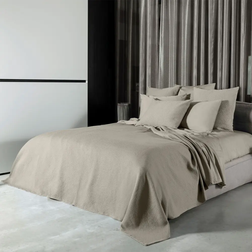 Made of 100% cotton, this coverlet is flawless for mid-season temperatures and as a bed cover during the summer. Finished with a simple hem and square edges. Made in Italy.