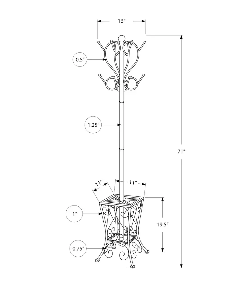 • Umbrella Holder: The base contains a time-saving umbrella holder with an classy scroll design, offering functionality while maintaining a stylish appearance.