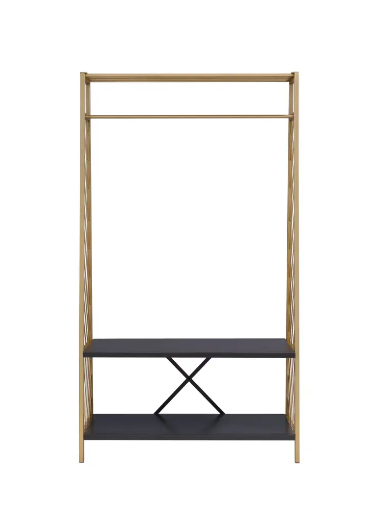 - Material and Finish: Engineered from sturdy steel, this hall tree boasts a luxurious aurum and black finish, offering both durability and a sophisticated aesthetic that complements various interior decors.
