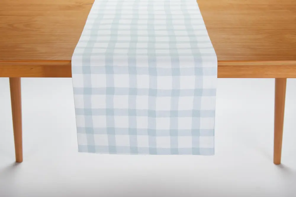 Create a velvety, soothing atmosphere with this 100% patterned cotton table runner that features Tableau-exclusive artwork—a classic grid pattern in misty blue. It’s the perfect way to add understated style to your table!