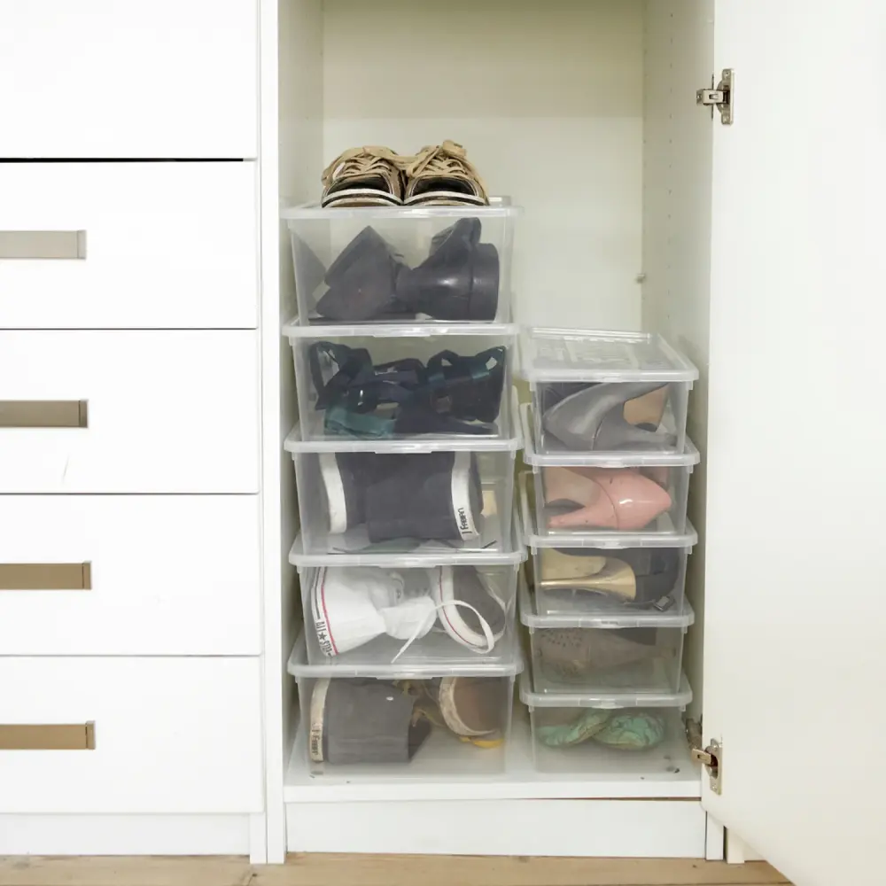 Plast Team Basic Container for Shoes storage box ✓ Transparent design shows all shoes ✓ Folds flat for off-season storage ► Transform Your Home Organization