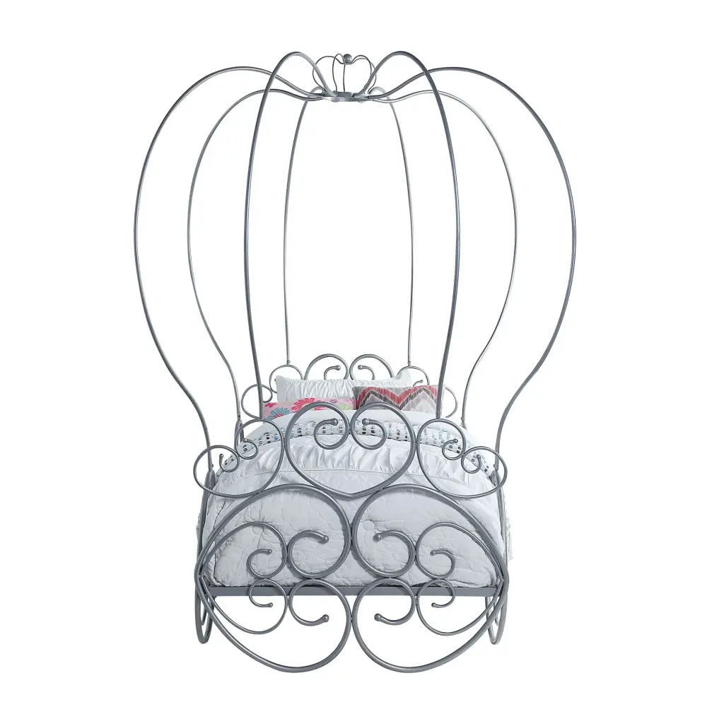 - Whimsical Design: This Twin Metal Bed with canopy offers a playful and charming look, making it premium for children’s rooms or guest spaces. Its pumpkin design and scrolled side rails toss in a unique and delightful character to any room.