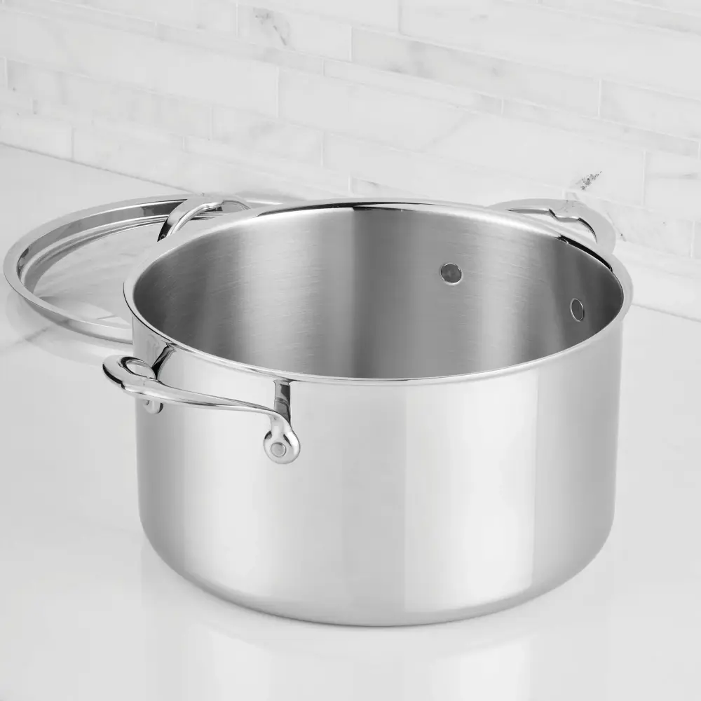 ProBond® Luxe™ Polished Clad Stainless Steel Stockpot with Lid ★ Dishwasher safe – time saving ★ Universal fit – one lid fits all → Enhance Cooking with Premium Lids