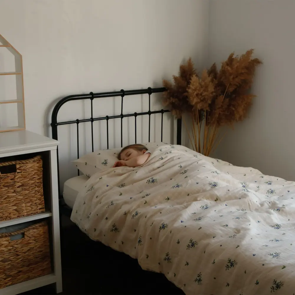 Our comforter and pillowcase set is made from 100% certified organic cotton muslin, meeting the strict standards of the Global Organic Textile Standard (GOTS) and Global Recycled Standard (GRS) certifications.