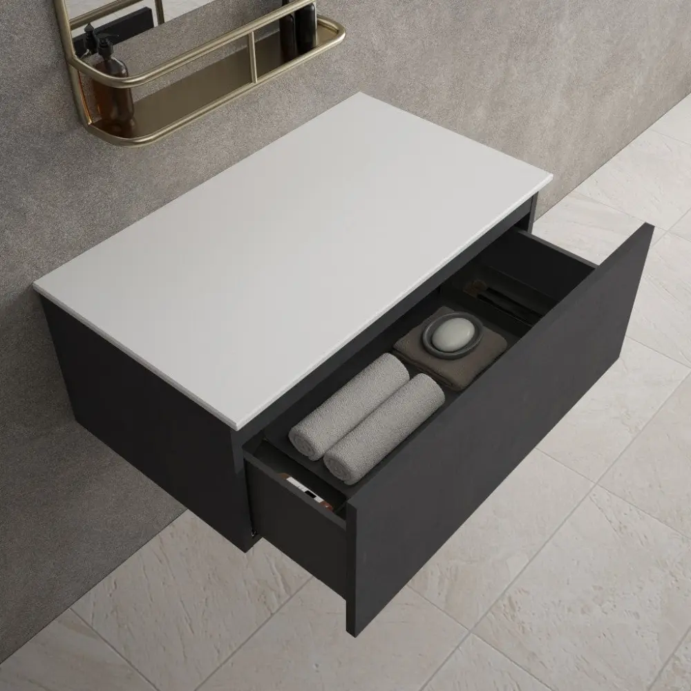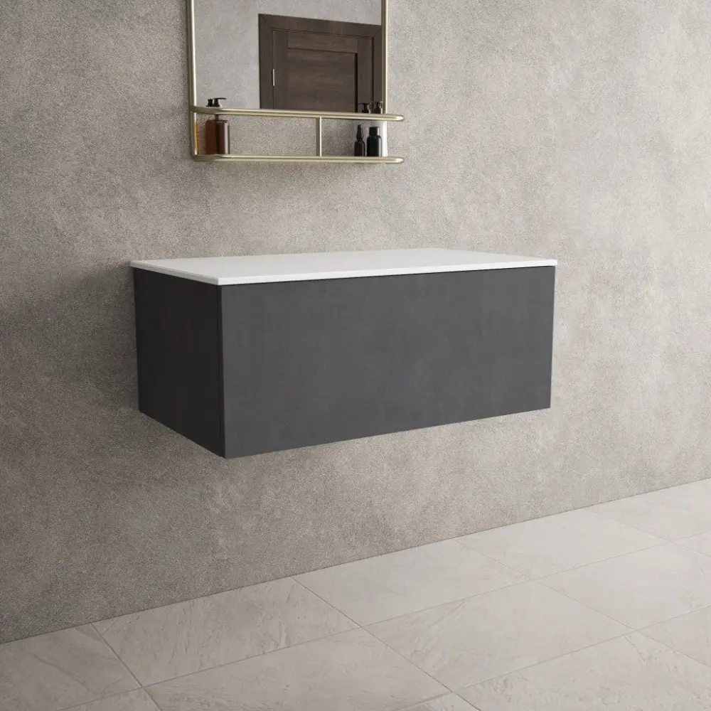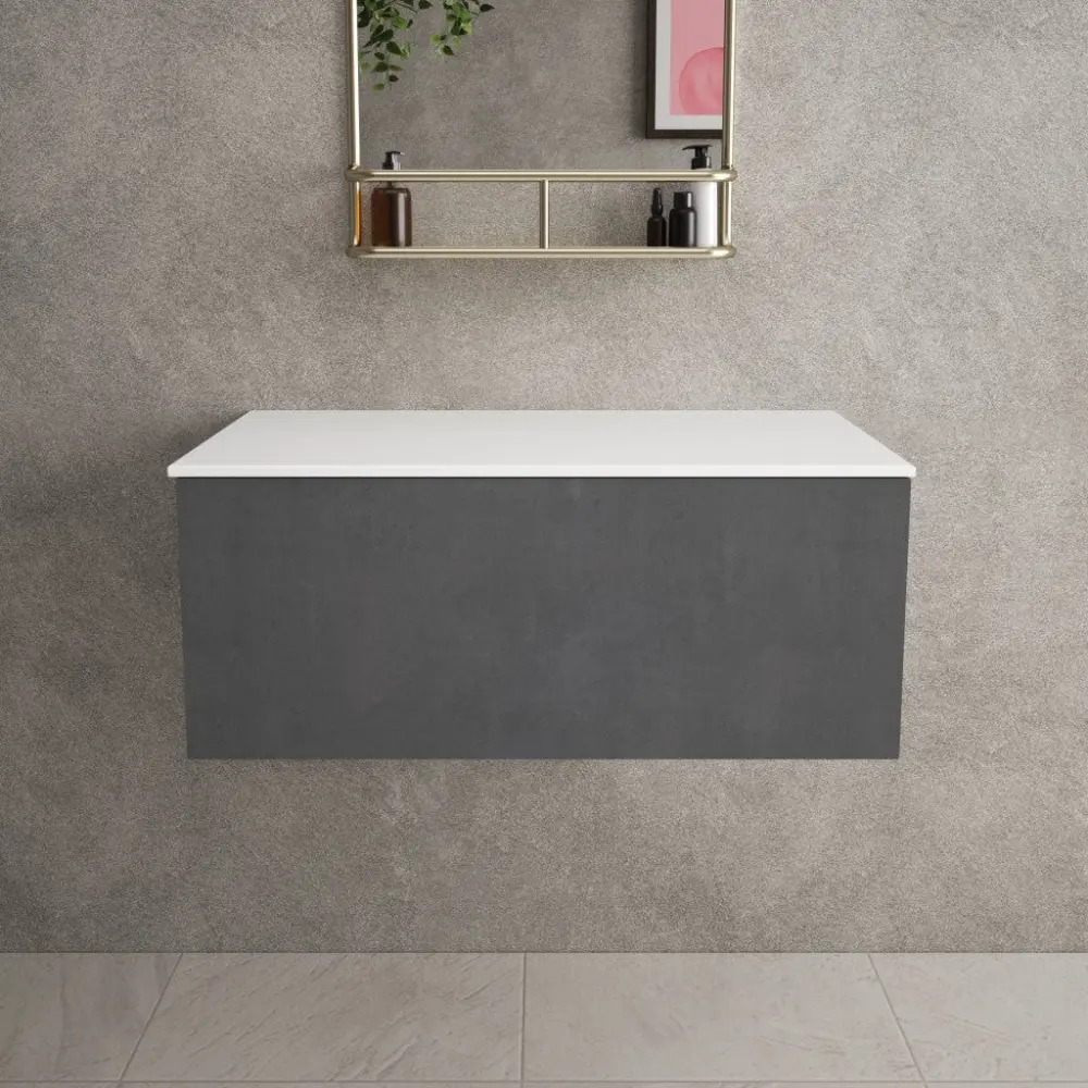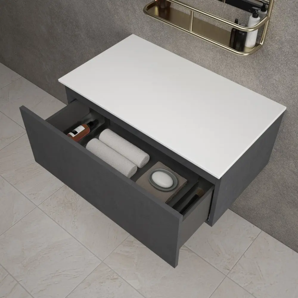 Raffinata Single Drawer Countertop Vanity Unit – Dark Concrete ● High Quality Construction ● 3-Year Limited Warranty ▶ As Seen on Trustpilot