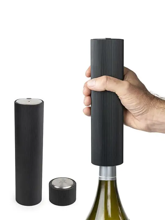Electric Vacuum Pump for Wine • 100% touchless vacuuming activation and deactivation. Notified by sound and light signal • Preserves the aromas of opened wine bottles for up to 5 days: the pump removes the a