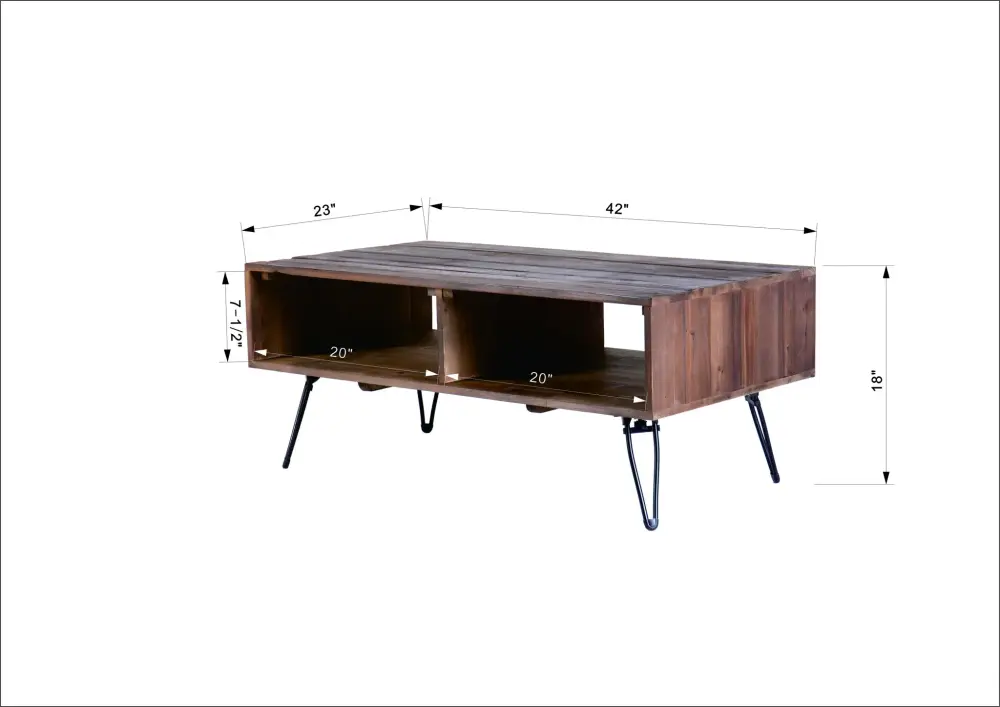 Reclaimed Wood Cocktail Table With Open Storage For Living Room,