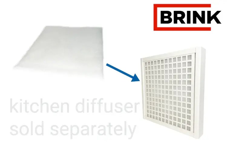 This Brink FLAIR Kitchen grill replacement filter should be used in combination with the Brink KITCHEN EXHAUST GRILL. The kitchen filter traps grease and cooking particles and keeps your ductwork immaculate. The kitchen filter should be changed every six months or as needed based on cooking frequency. The Brink kitchen exhaust should be located a minimum of 6′ from the cooktop. To replace the kitchen filter, slide, then pull on the front grate of the KITCHEN EXHAUST grill.