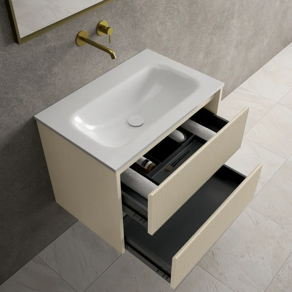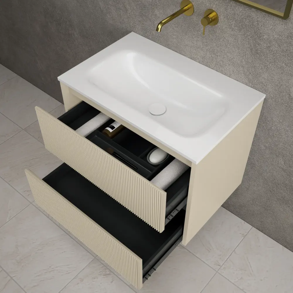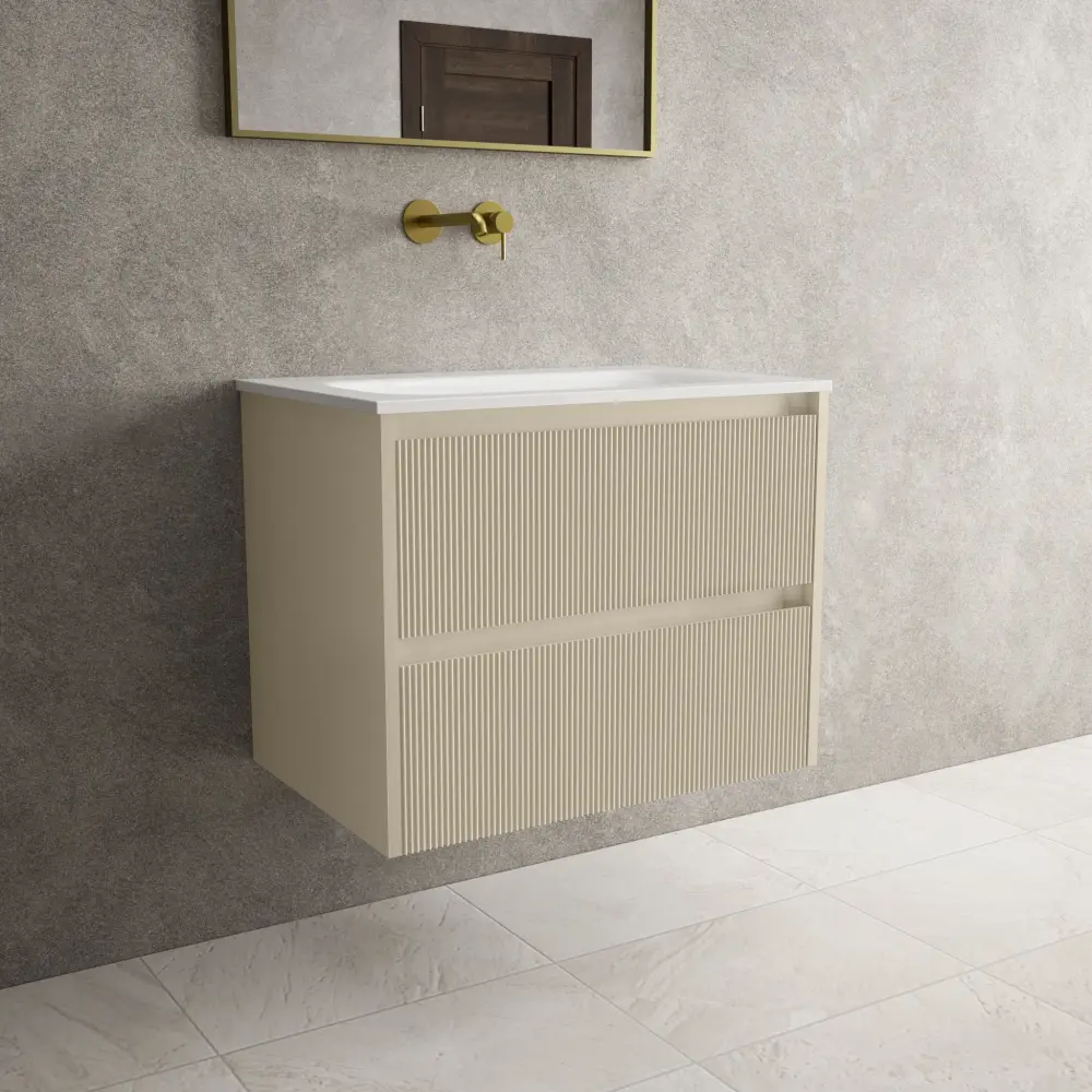 Scanalato Double Drawer Vanity Unit With Beyondstone Basin – Cashmere ✓ Premium Quality Materials ✓ Satisfaction guaranteed or your money back ► Full Refund if Unsatisfied