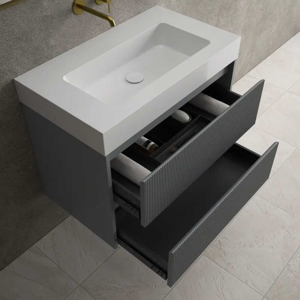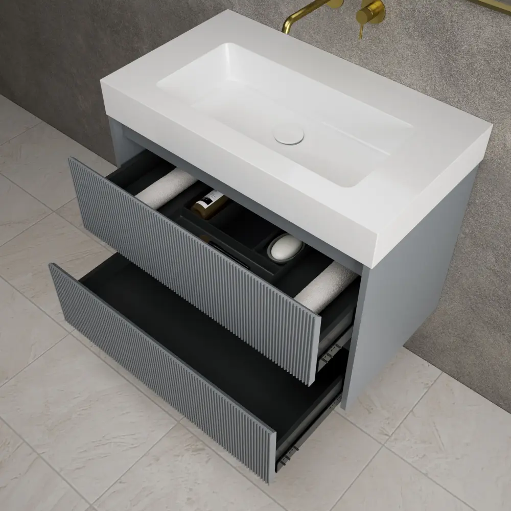 Scanalato Double Drawer Vanity Unit With Beyondstone BLOC Basin ● 60-day money-back guarantee ● Award-Winning Product Design ▶ Used by Industry Leaders