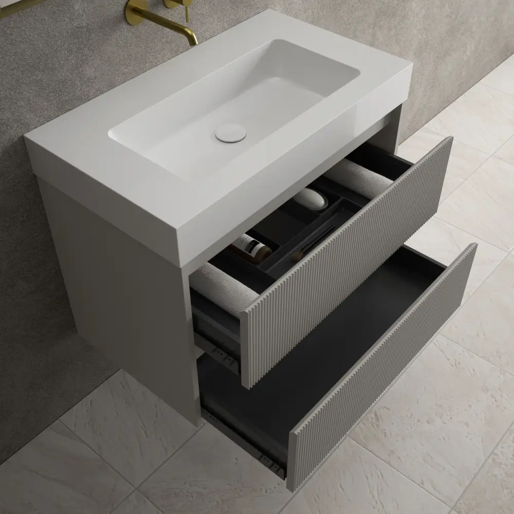 Scanalato Double Drawer Vanity Unit With Beyondstone BLOC Basin ✓ 5-Year Warranty on All Products ✓ Top Rated Quality – Customer Approved ► Over 5,000 5-Star Reviews