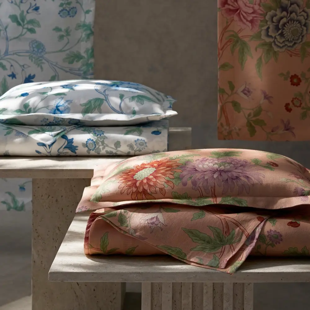 Breathtakingly vibrant, Simone’s floral print is inspired by a 19th century English fabric remnant hand-selected from Schumacher’s vast archive. Translated to our ultra soft Roman linen, the print takes on a multi-dimensional effect extensive of rich texture and shadow?perfect for top of bed styling or mixed in with our range of percales and embroideries.