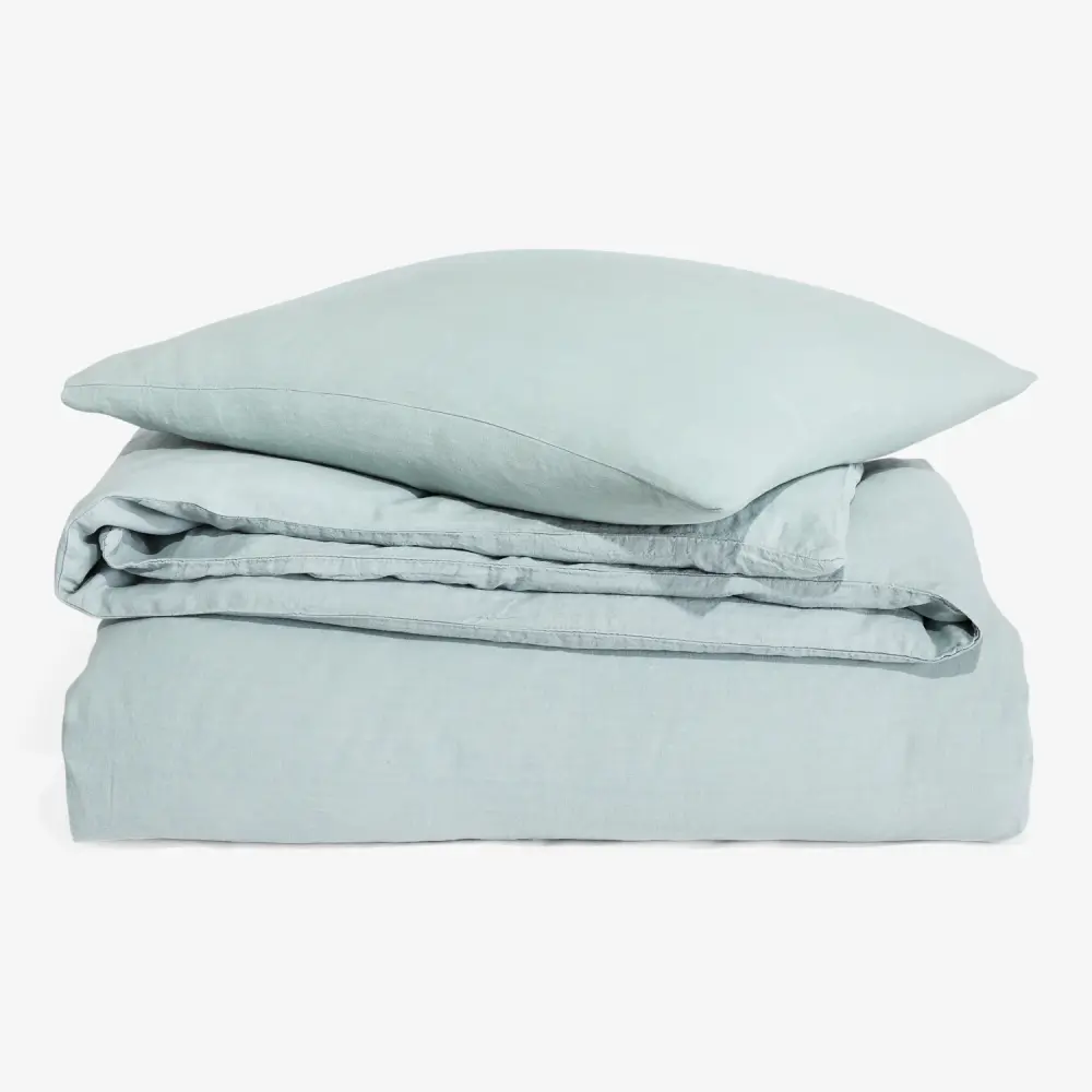 Both breathable and soft, linen finds balance in every season, keeping you cool in the summer and warm in the winter. Finished with hidden button closures and corner ties, the duvet design ensures that comforters stay in place. Shams are finished with an envelope closure.