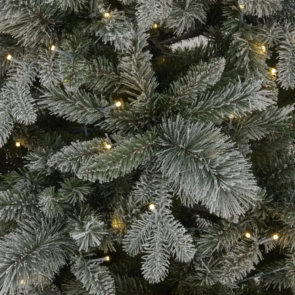 Welcome the magic of winter into your space with our enchanting pre-lit forest fir, dusted with a realistic snowy finish that catches and reflects the warm glow of 400 LED lights. This magnificent artificial tree creates an immediate focal point, with its densely layered branches and precise needle placement offering unmatched authenticity. The pristine white coating mimics freshly fallen snow, while the strategic placement of warm LED lights manufactures a gentle, welcoming radiance that illuminates the tree from within. Each branch has been designed to hold decorations tightly, making it perfect for creative merchandising displays. To illuminate, simply plug into a regular mains electricity socket.