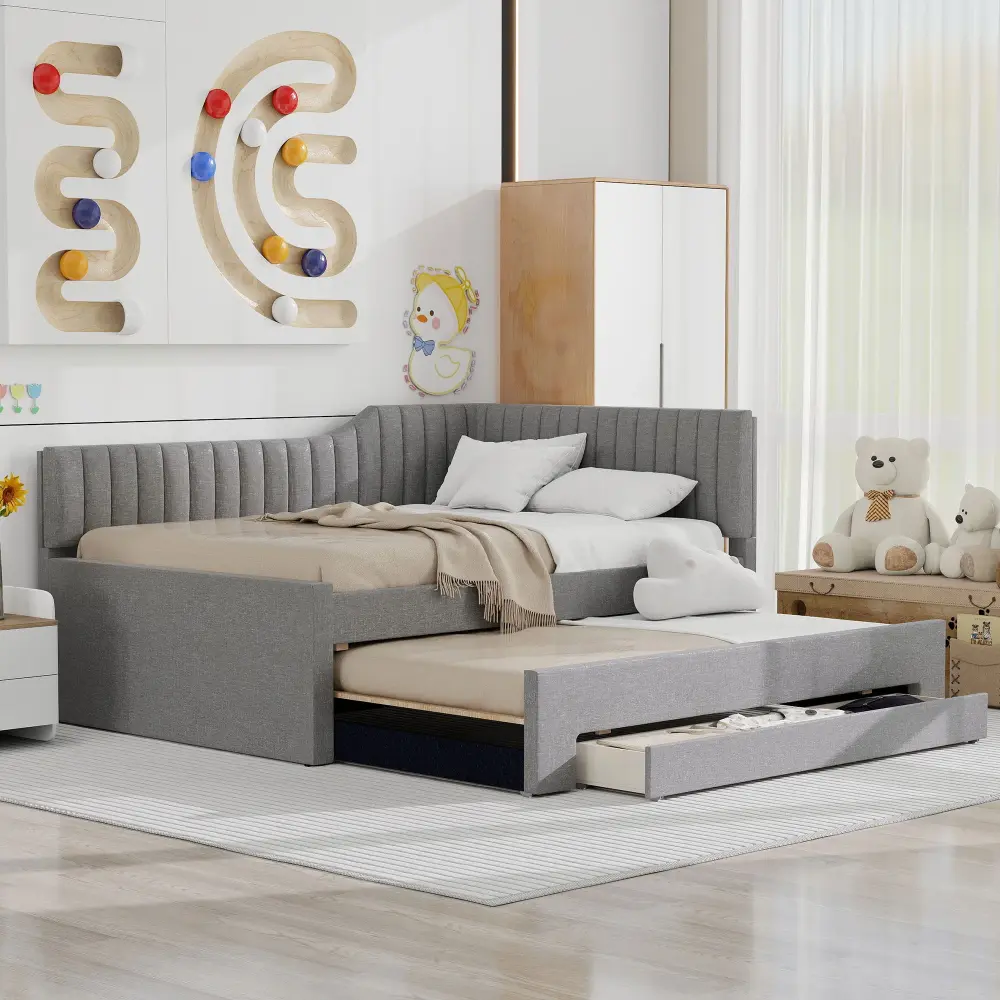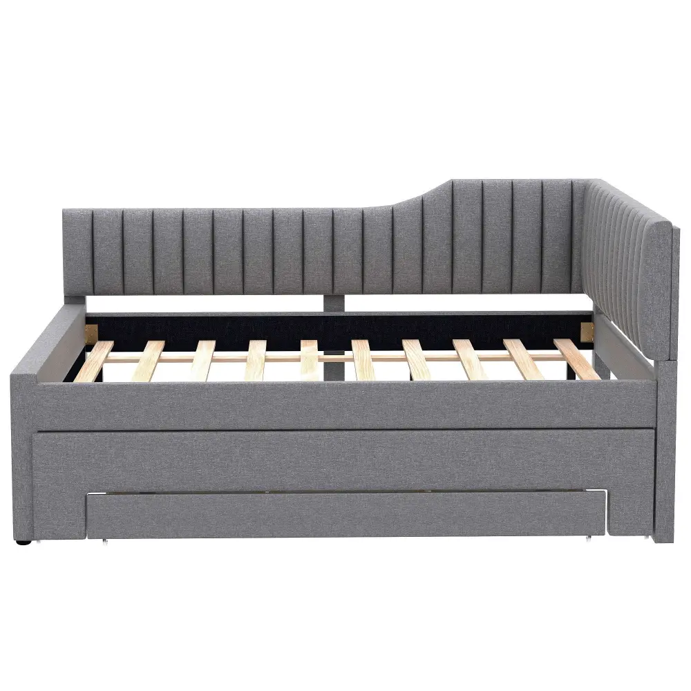 Full Size Upholstered Daybed With Trundle And 3 Drawers – Gray