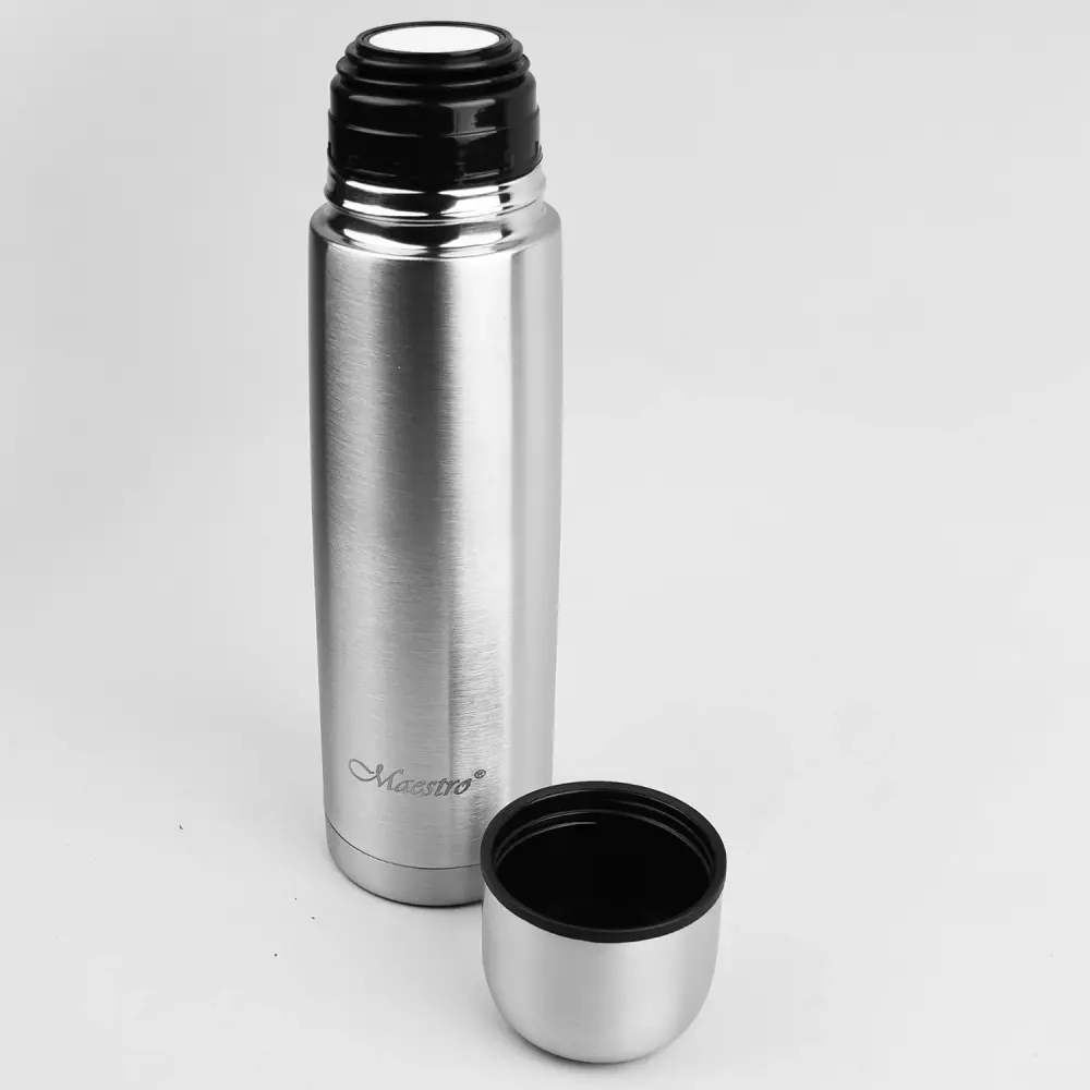 – Maestro MR-1633-75 Stainless chromed thermos with insulation, drinking cup and carrying bag for hot or cold drinks (750 ml)