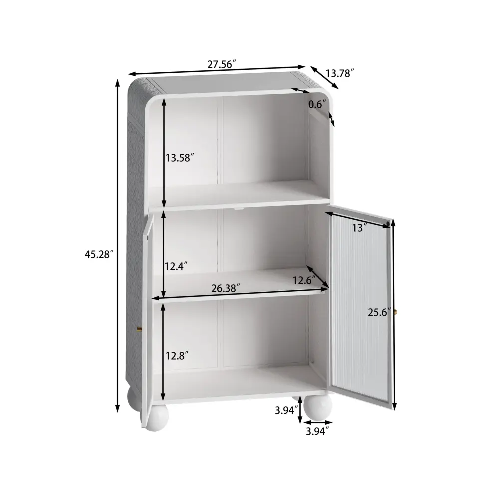 Storage Cabinet With Shelves And Glass Door, Freestanding Organizer ★ Includes plastic bag dispenser attachment ★ Fits 30 standard spice jars → Maximize Your Cabinet Space