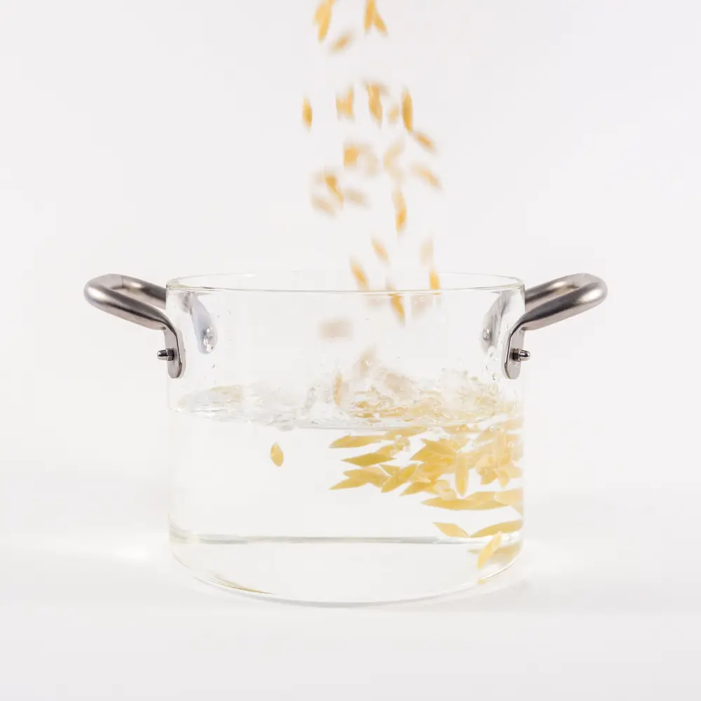 Cook all your favorite soups, pasta, and sauces in The Glass Pot. This clear glass cookware is made of borosilicate glass that is resistant to flame and non-reactive, so you can use it for boiling any type of food. The ingredients of your dishes become the protagonist with their shapes, colors, and movement on extensive display while cooking.