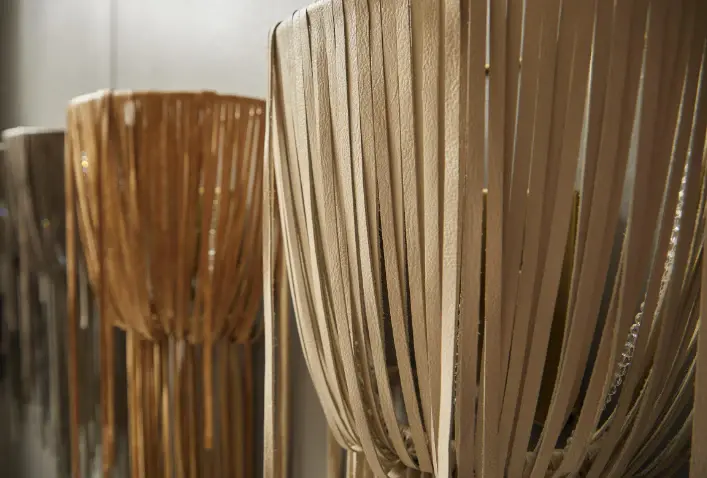 Our Urchin wall sconce incorporates an sophisticated pattern of hand-cut leather strips. All hard-wired lighting is UL-listed for dry locations. Not suitable for outdoor use.