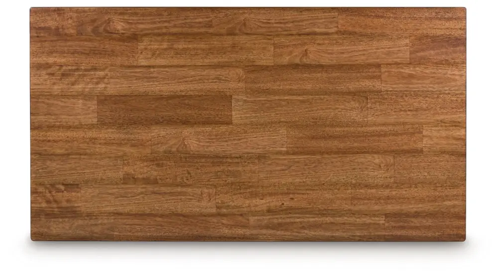 - Top with butcher block veneer pattern in rich brown wood-tone finish